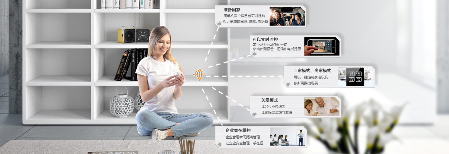 在过去,忙碌一天,拖着疲惫的身躯回到家,迎接您的却是一片黑暗,您还需在黑暗中摸索,寻找开关。而如今,抛弃繁杂的控制方式,只需通过手机,在您回家的路上,您就可以打开家中的开关。明亮的灯光,温暖的光线,让您的生活更加丰富多彩!煜杉互动智能科技有线智能,以思美特产品为主打,为您打造一个更加舒适、更加方便的环境。 不同的场景,不同的灯光。